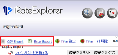 リスト及びグラフを表示した状態で、[CSV Export]または[Excel Export]アイコンをクリックするとそれぞれの形式で形式にてファイルを作成します。