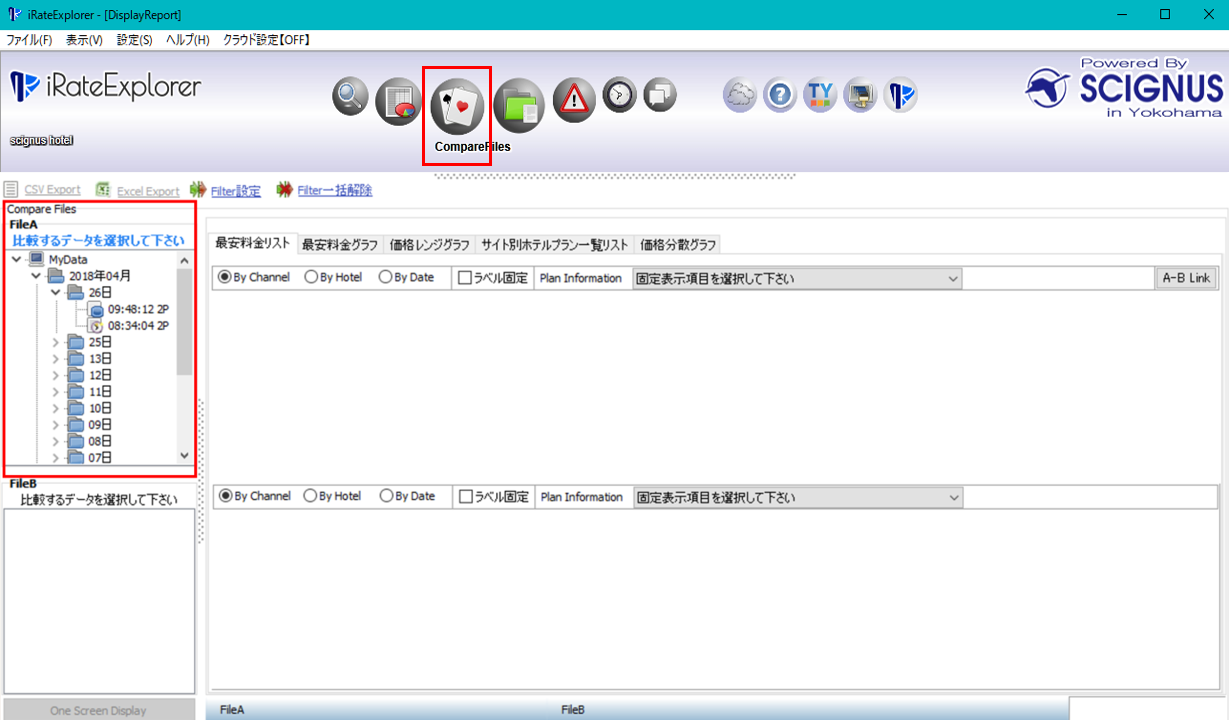 次にエクスプロールバーの下側から、[FileA]と比較データしたいデータファイル(以降 [File B]と呼びます)を選択して下さい。