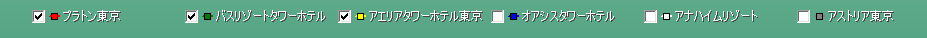 グラフ画面下部に表示される凡例のチェックボックス上でチェックマークを操作する事により該当ホテルのデータ表示・非表示をコントロールする事ができます。