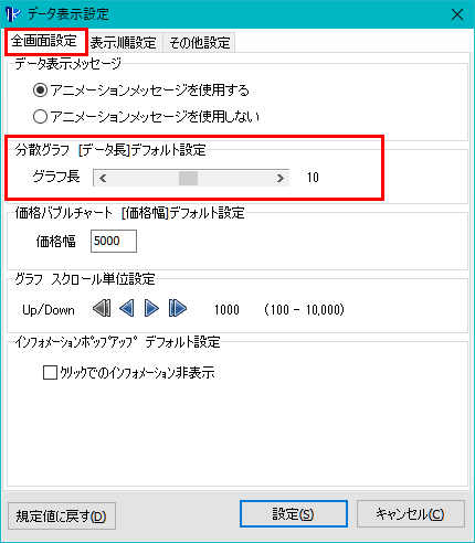 価格分散グラフ上で表示される、棒グラフの初期設定値を変更する。