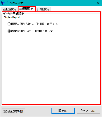 【Display Report】画面に表示されるデータの日付順序を設定することが可能です。