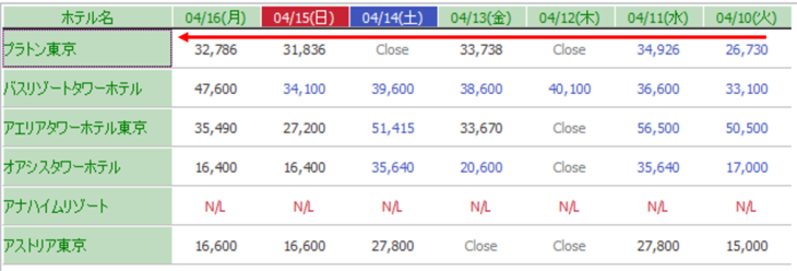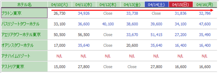 最安料金リスト、最安料金グラフ、価格分散グラフ、価格バブルチャート画面にて、料金及びグラフクリック時のインフォメーション画面ポップアップ設定の変更。
