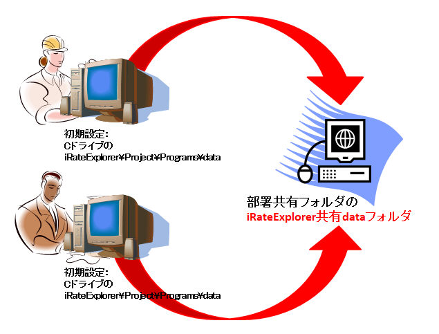 ●複数のパソコンにインストールされたiRateExplorerで同一のデータを参照するように設定を変更することができます。