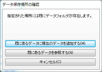 - 既にあるデータに現在のデータを追加する:保存先フォルダ内にあるデータとあなた様のデータを統合する場合に選択します。