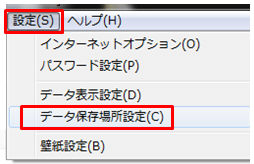 B-1 iRateExplorerの画面左上部にある、メニューバーから「設定」を選択し、表示されるプルダウンメニューから「データ保存場所設定」を選択して下さい。