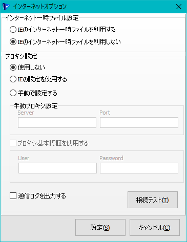 インターネットオプション画面では、iRateExplorer のインターネット接続に関する設定を行います。