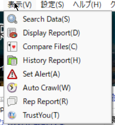 iRateExplorer の主な操作や画面の切替、また、各種設定画面等へのアクセスにはメニューバーを利用します。