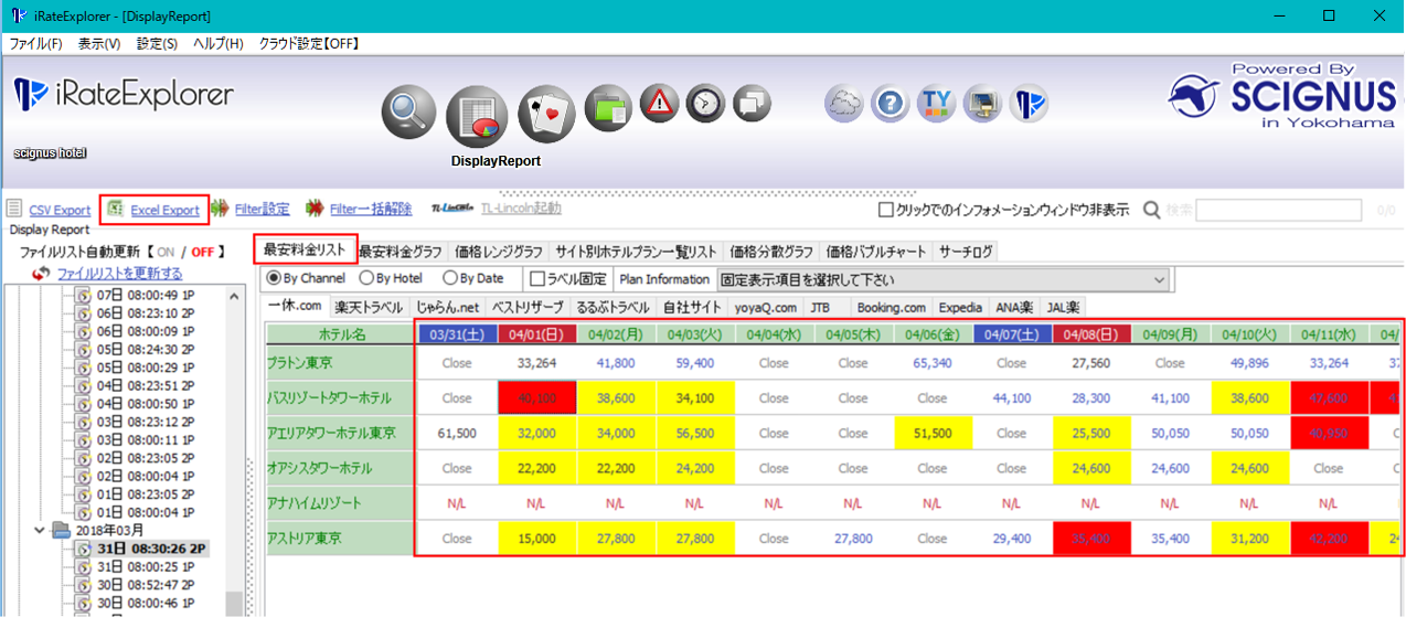 - 設定されたアラートは【Display Report】画面の最安料金リスト、【Compare Files】画面の最安料金リスト上に反映されます。