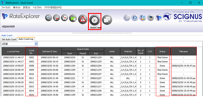 Shut Down : Auto Crawl が実施される日時にiRateExplorerが起動していなかった事を意味します。
