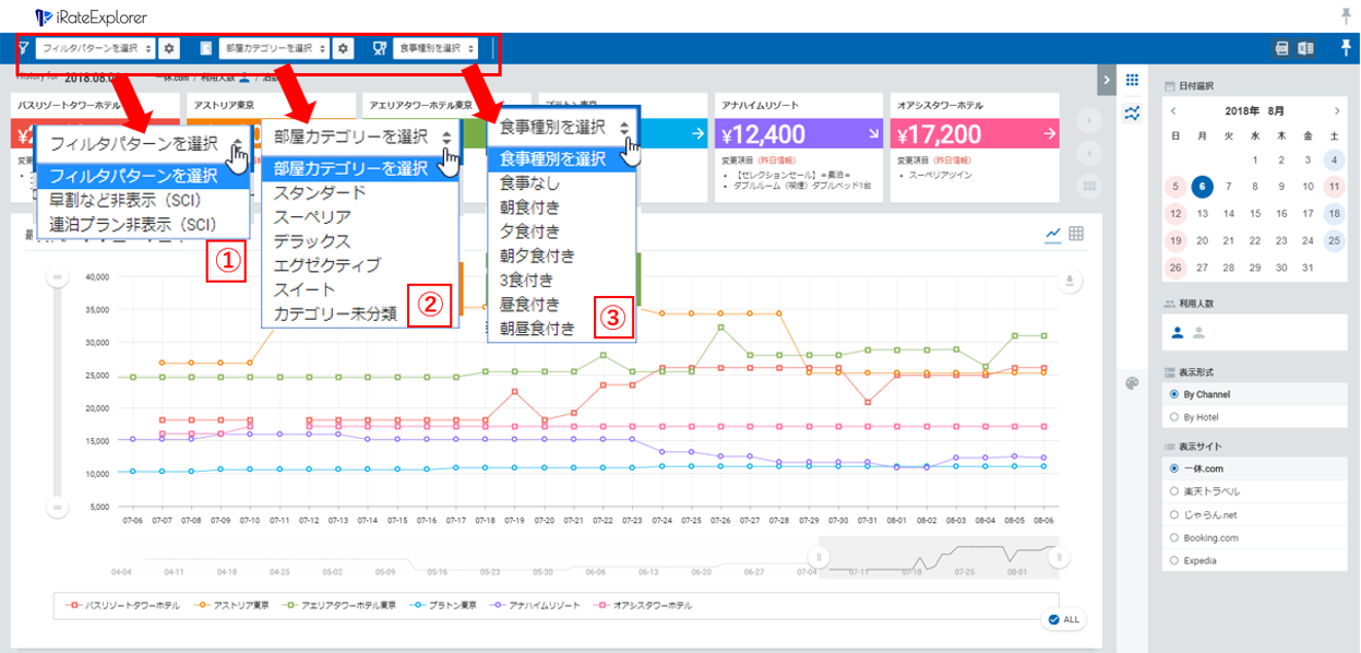②部屋カテゴリ―からフィルターを選択