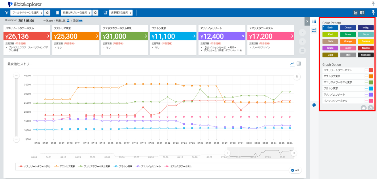 従いまして、同じホテルのどなたかがグラフの色・形状を変更登録すると全てのユーザーに色・線形状の変更が反映します。