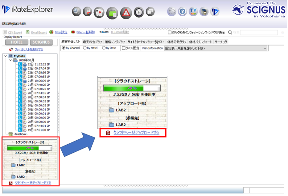 - DisplayReport画面左側ツリービューの一番下にある「クラウドへ一括アップロードする」をクリックします。