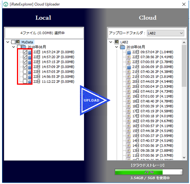 端末にて巡回した過去のデータを1つずつクラウドサーバーへアップロードすることが可能です。