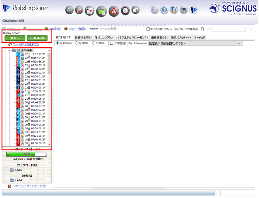 セントラル巡回データを受け取っているホテル様は、[SCIGNUS]アイコンを[ON]にすると該当データが表示されます。