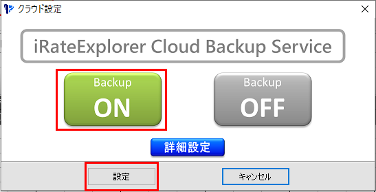 これで「クラウドバックアップサービス」が「ON」になりました。